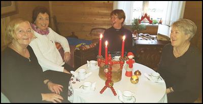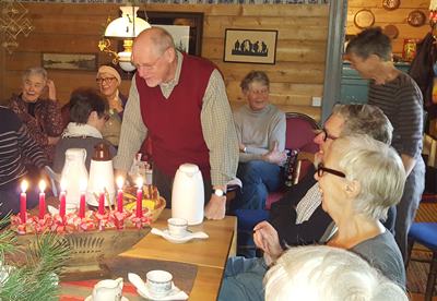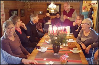 Den 18/12 avslutade vi långvandringarna för året. Margreth dukade upp ett kaffebord i Hembygdsgården Gullbrandstorp för nöjda vandrare.