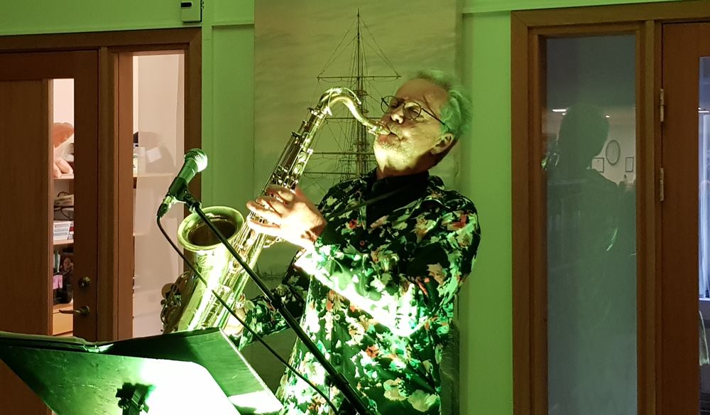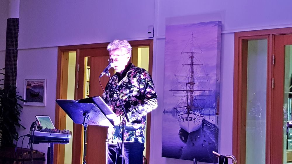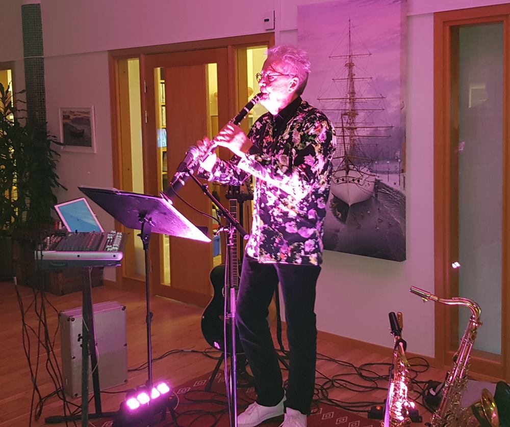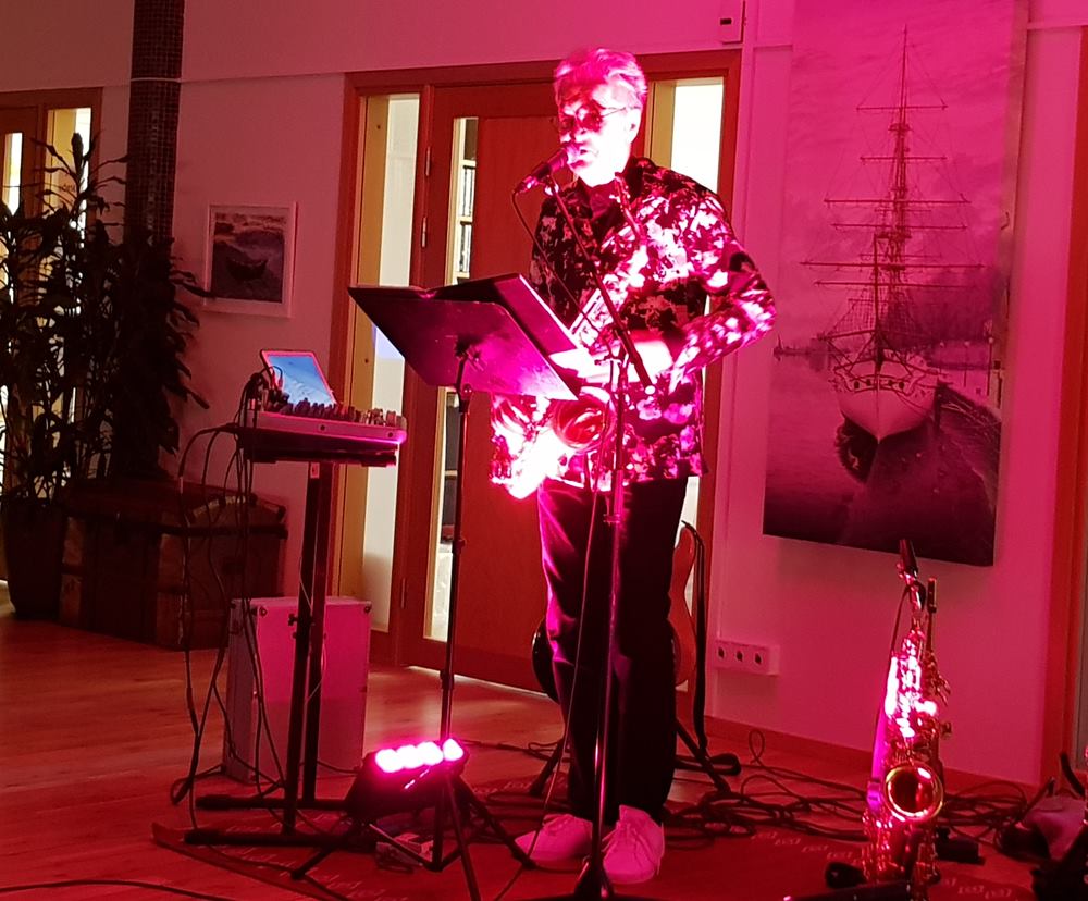 Mätta och glada vände alla blickarna framåt igen mot ”scenen” och där stod en glad och go man från Vara, mitt i Västergötland, KENNETH HOLMSTRÖM omringad av en prydligt uppriggad samling instrument. Med ett förflutit som musikant i gruppen DRIFTERS under en 10-årsperiod på 80-90-talet, tänkte han att när jag blir pensionär skall jag minsann ut och framträda alldeles ensam och ge eventuell publik MIN MUSIK med sång och ackompanjemang av klarinett, gitarr och 3 olika saxofonvarianter. Och vad hände……jo, numera är han fullbokad lååång tid framöver! STOR SUCCÉ! För oss denna torsdag löd rubriken också MIN MUSIK och han hade utvalt 10 storhits från sin tid i THE DRIFTERS och gav oss 10 riktiga ”örhängen” enligt följande: 1) Två mörka ögon 2) Kan man älska någon på avstånd 3) sopransaxofonen togs fram till låten You raise me up. Så kom han till ett äldreboende i Lidköpingstrakten där han skulle underhålla med sin sång & musik och här mötte han Monica som sytt kläder till bandet Drifters och hon tyckte absolut att han skulle byta blazern mot en jacka som hon ville sy åt honom. Nu kastade han av blazern och tog på sig Monicas ”bidrag” till stor munterhet bland publiken. Låt nr 4) Jag trodde änglarna fanns 5) Klarinettpolka 6) The ”real” Amapola 7) I love Carina 8) Neil Sedaka ”Darling I love you 9) Volare, särskilt för Lions i Borås och 10) Save the last dance for me. Men naturligtvis kom extranummer (11) Happy birthday sweet 16 och därmed avslutades dagens musikaliska avdelning och Kenneth kunde sälja ett antal CD-skivor som spelats in under åren 2015-2018.