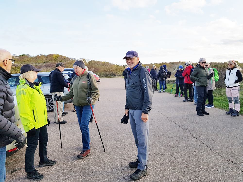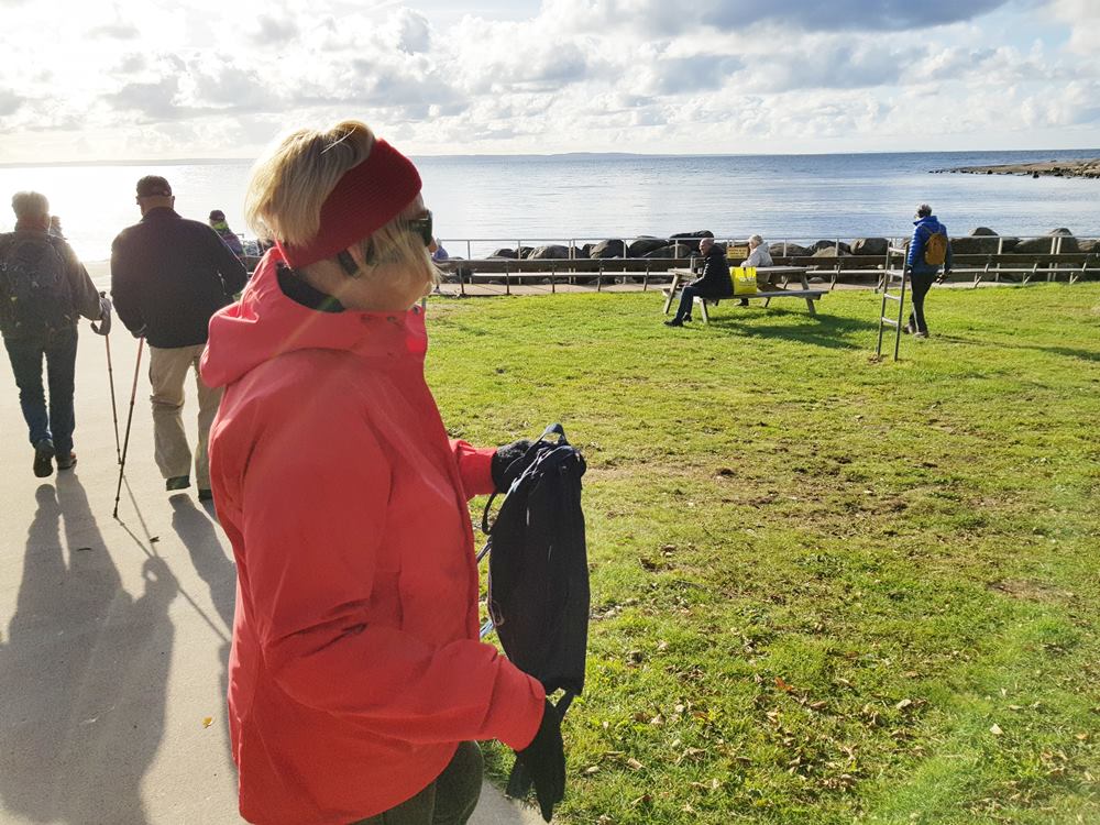 Marie Karlssonmöte upp vid hamnparkeringen i Grötvik.Vi fick information om Grötviks historia och dess betydelse för stenbrytningen. Vandrigen gick förbi spritkullen och fortsatte på en stig mellan Nya Tylösandsvägen och Sandhamn som för många var en ny upplevelse. Vi fikade vid handikappbadet i Tylösand. Tillbakavägen gick via Prins Bertils stig. Det var 40 medlemmar som vandrade.