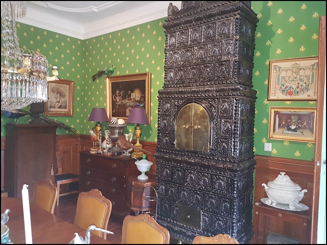 Då han även är utbildad och intresserad av mat, så var köket väl utrustat med en enorm köksspis för gas, två ugnar, ett stekbord och möjlighet för vattenbad. Hur i hela friden fick de in denna stora spisen i lägenheter, undrar jag??