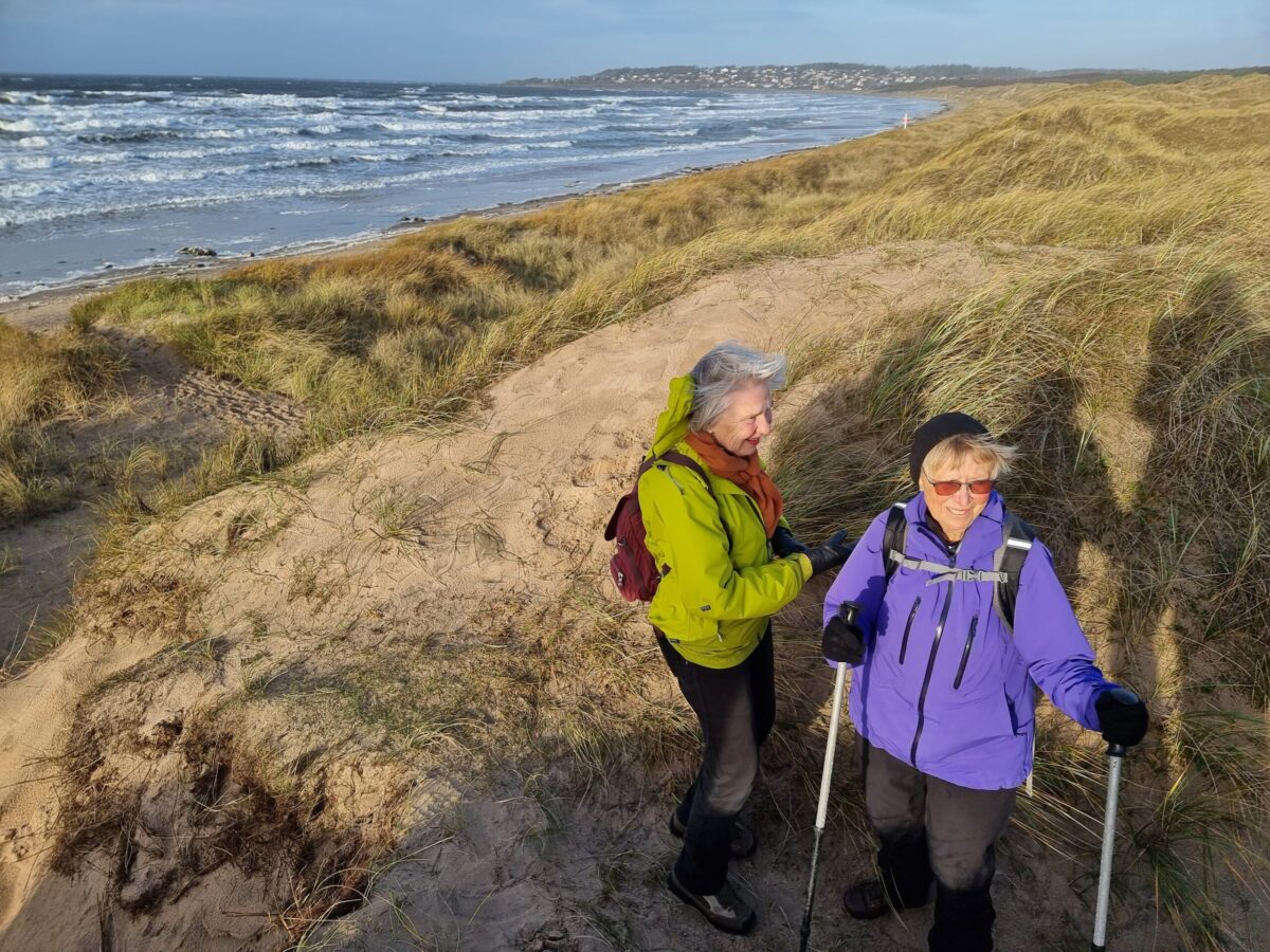 Vandringen gick i Haverdals Naturreservat där 17 medlemar mötte upp ca 13 km avverkades både härs och tvärs på de olika lederna, trots viss förvirring av ledarna så såg vi både trollskogen, havet, korkeken och sanddynen som med viss möda vi tog oss uppför. Och vädrets makter var även i dag på vår sida.