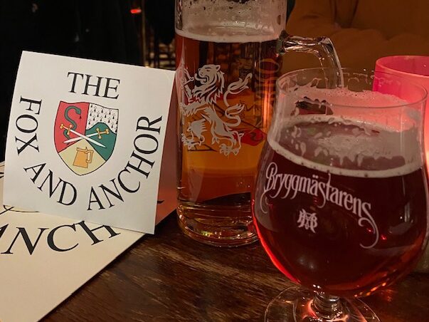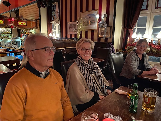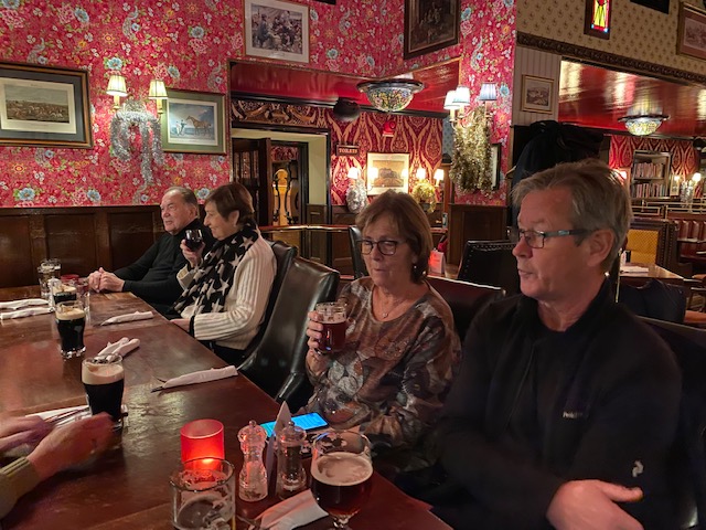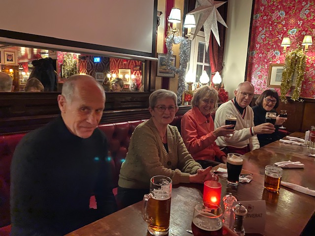 15 personer vågade sig ut i snön till värmen på Fox and Anchor! Trevligt och gott!