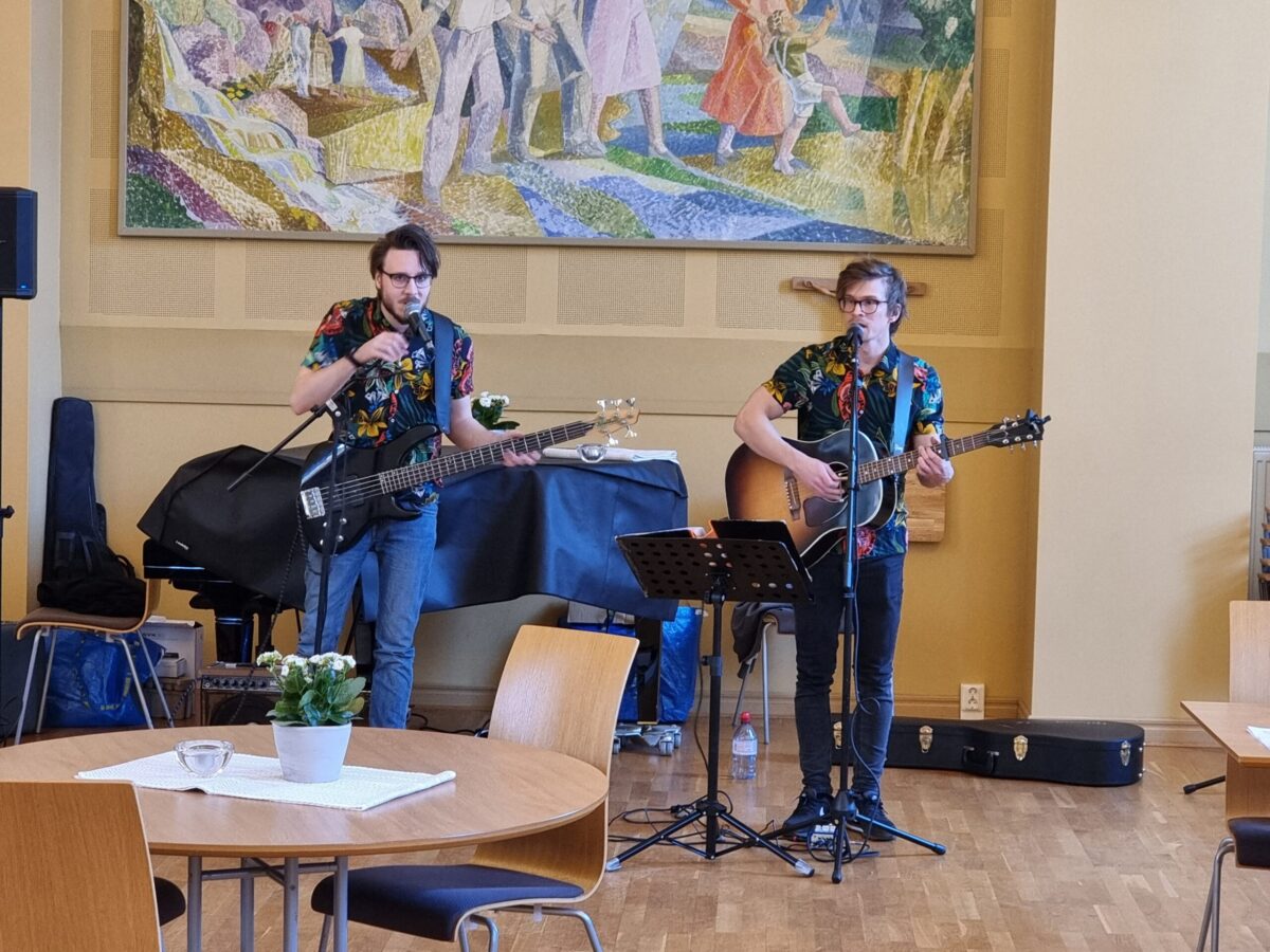 Alla fick mottaga en gåva från FASH. Efter detta blev det underhållning av Två Leende Blommiga Grabbar, som spelade och sjöng från