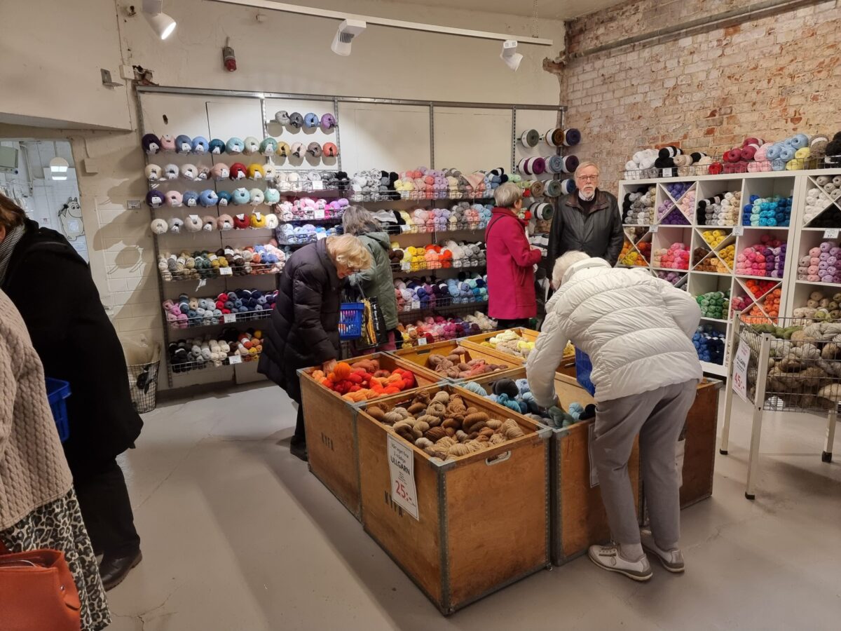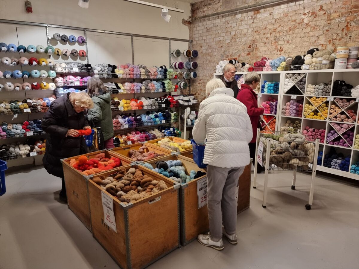 Efter kyrkobesöket gick färden vidare till Yllefabriken – ett shoppingtempel för textilintresserade.