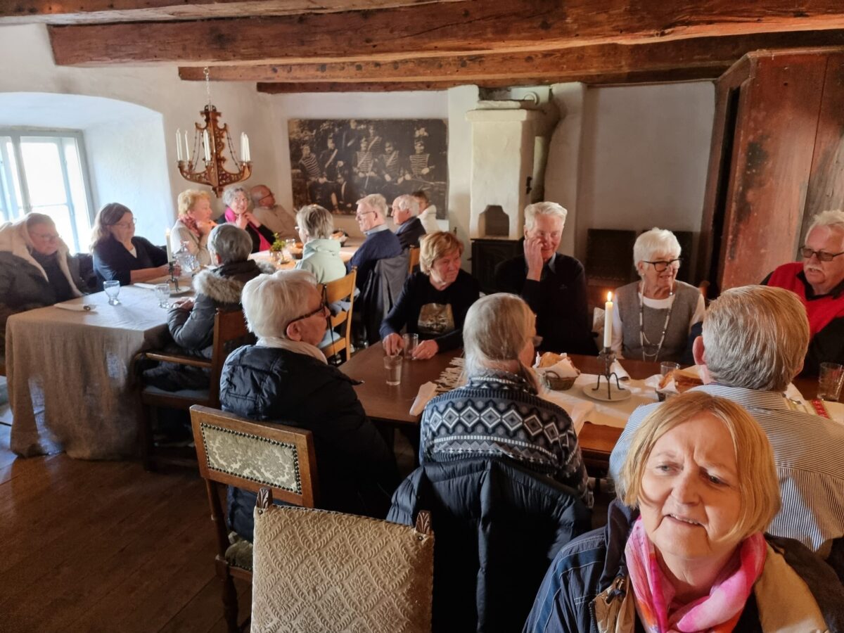 Resans sista stopp gjorde vi på Tomarps Kungsgård utanför Ängelholm. Där hade både Christian Tyrann och Valdemar Atterdag övernattat och ätit före oss. För vår del bestod lunchen av tomatsoppa och björnbärspaj.