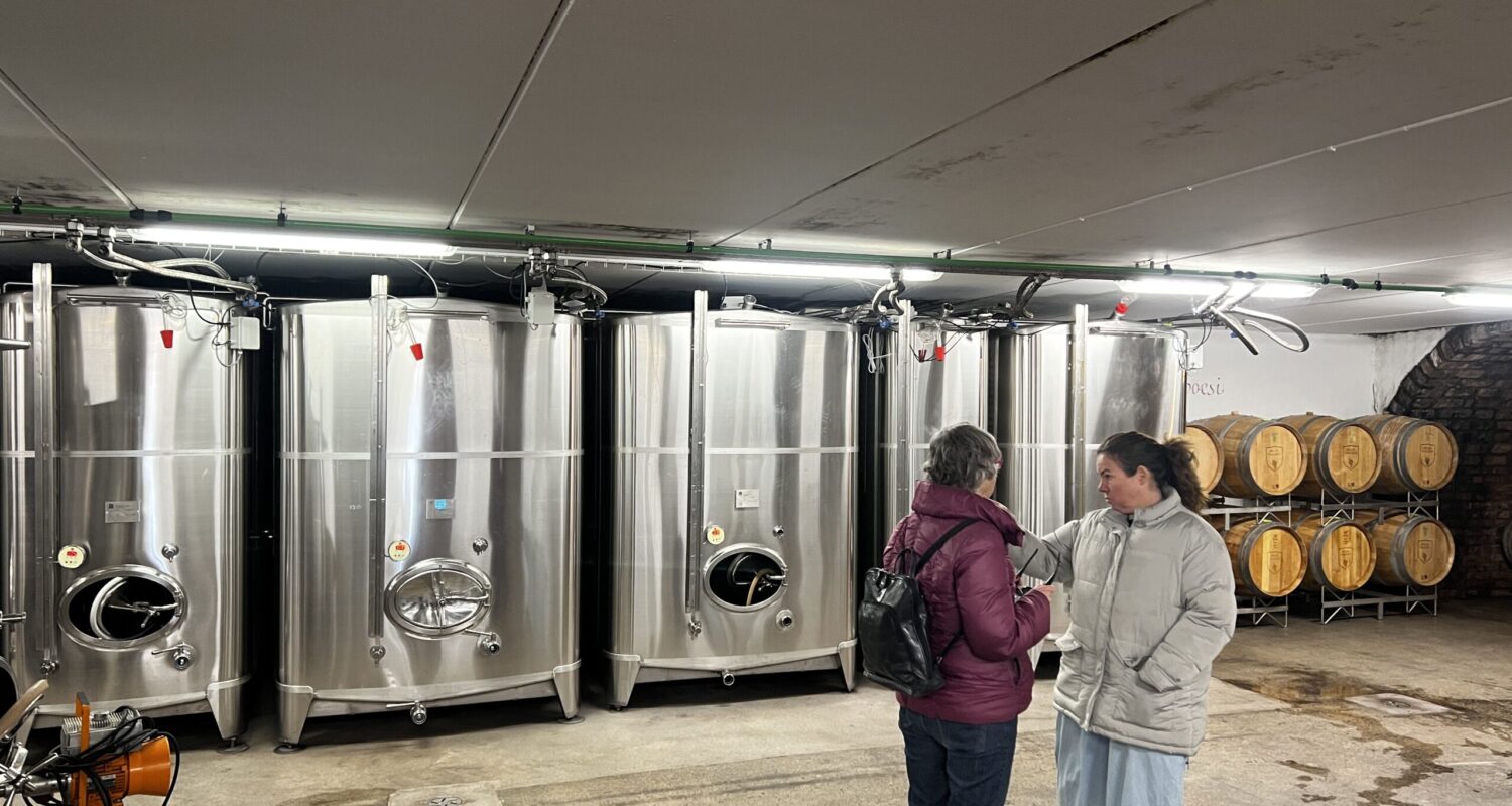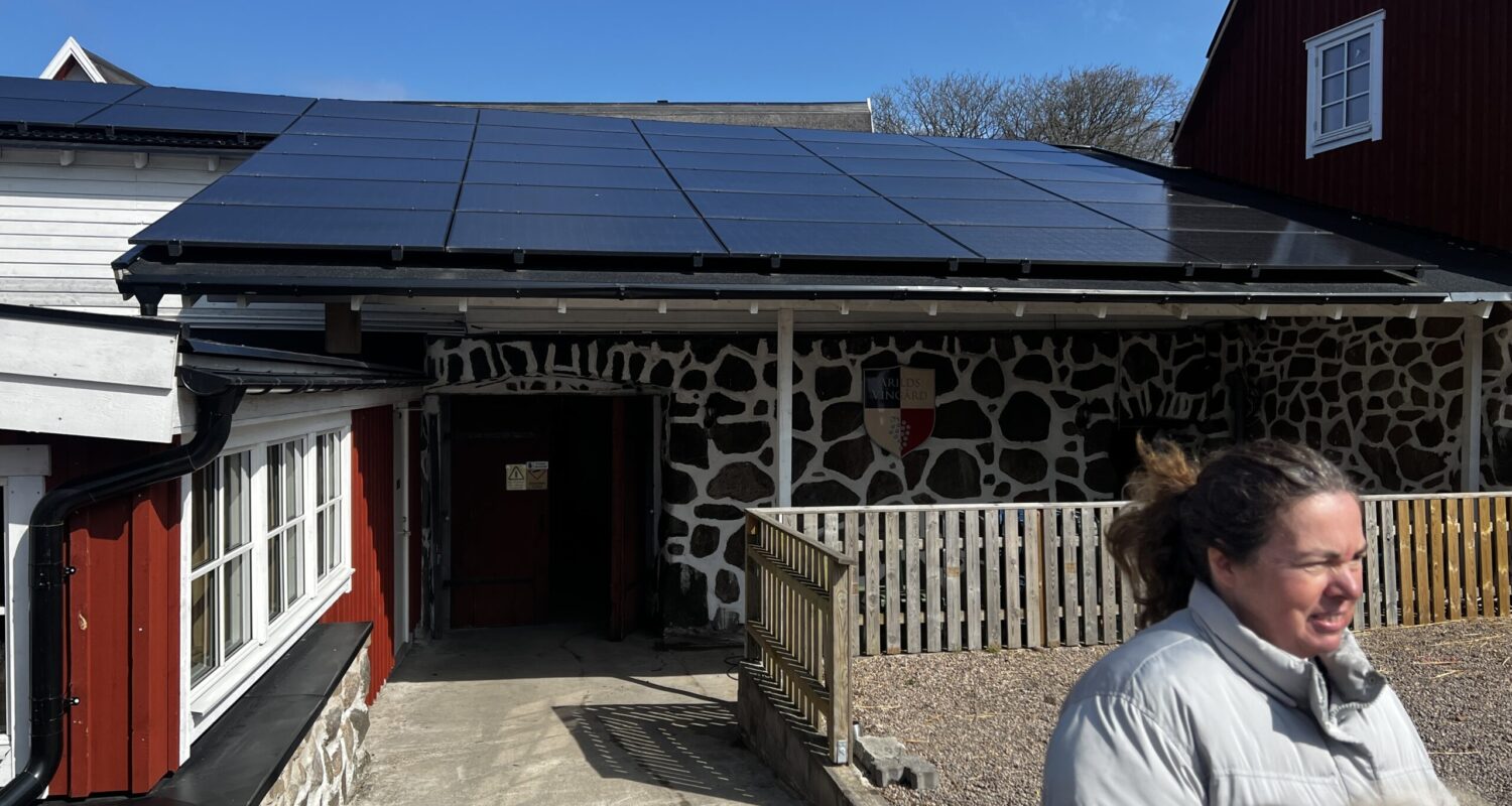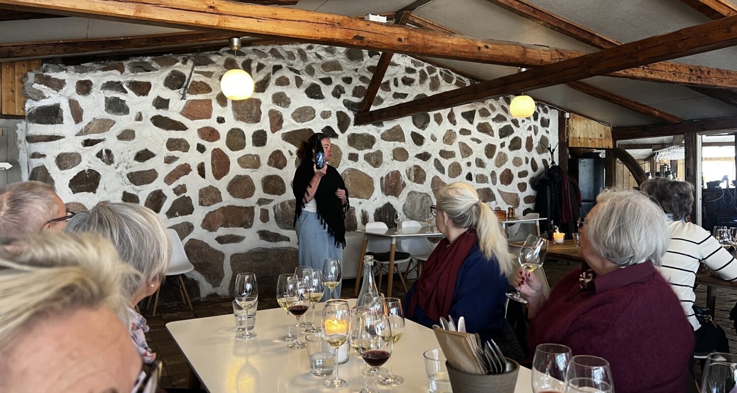 Vi tas emot av Anette en av ägarna. Hon berättar hur plantering och skötsel av vinstockarna går till.