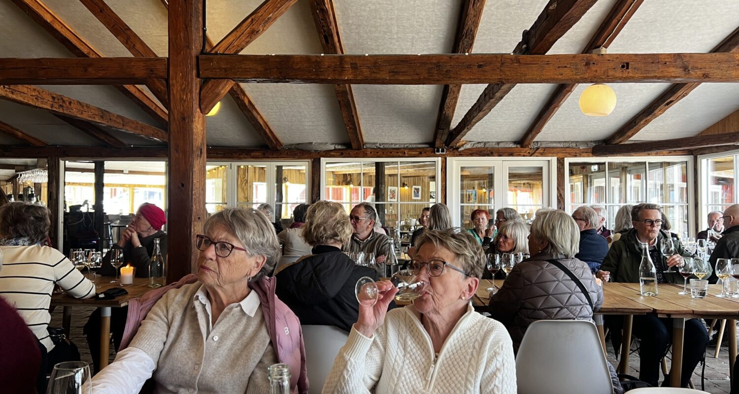 Så bjuds vi på vinprovning 2 vita och 1 röd. Till lunch äter vi goda Wallenbergare med mos.