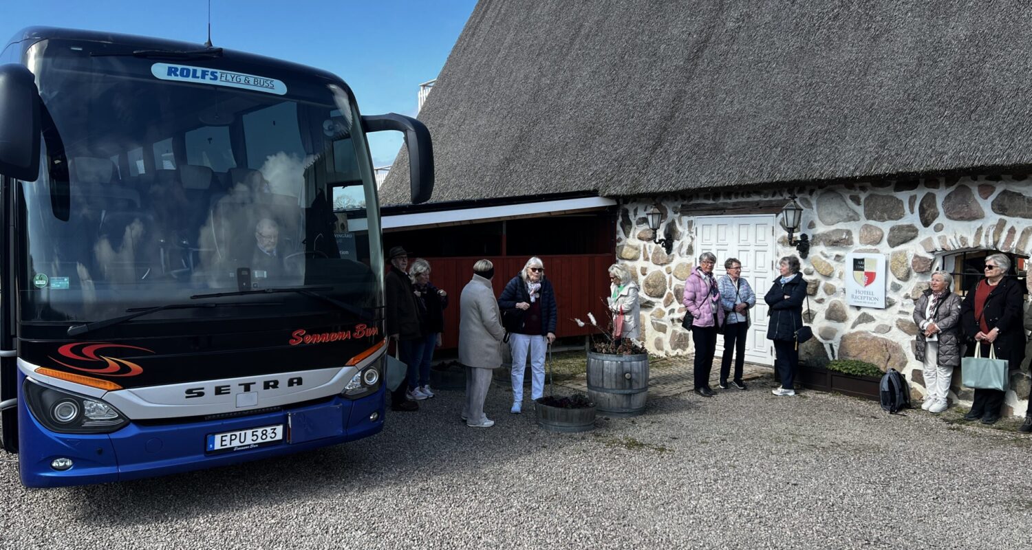 Åter en resa till Arilds vingård.49 personer åker iväg och möts av sol.