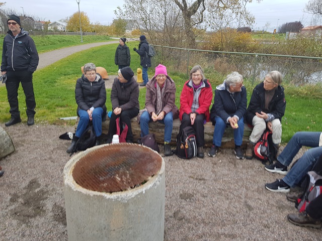 November månads första vandring gick runt Fyllinge. Vi samlades vid Hallarna och Kajsa räknade deltagarna till hela 44 st. Vi startade via Fyllebro och upp på motionsslingan för att följa denna en bit. Därefter genom villaområdet till vår fikaplats. Här tog vi vårt medhavda kaffe och pustade ut en liten stund. Efter pausen gick vi ut i den nya delen som just är klart för att bebyggas. Avslutningsvis rundade vi Stadsbondgården och pratade lite om att denna kanske skall läggas ned om kommunens budget stramas åt. Åter vid Hallarna tackade vi varann för två timmars trevlig samvaro och kände oss väl till mods med frisk luft i lungorna och många steg i benen. De trevliga bilderna har Lennart Lindström tagit.