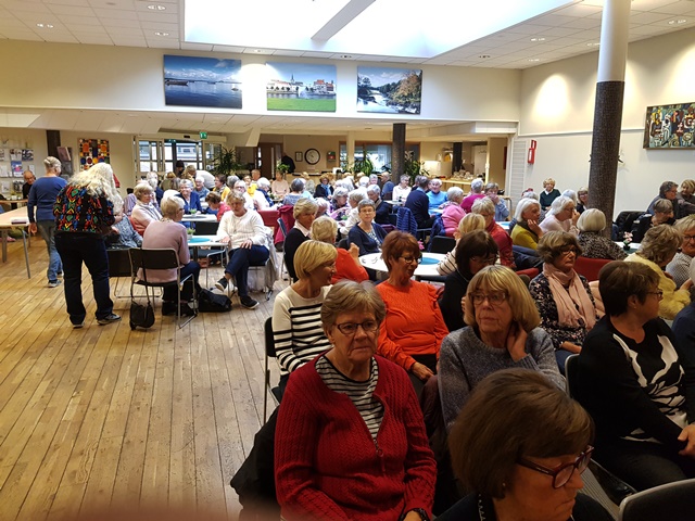 Månadsmötet den 1 november lockade som vanligt många besökare. Marianne öppnade traditionsenligt med ett välkomnande HEJ följt av uppmaningen att hälsa höger/vänster/runt om. Sen kunde mötet börja. Information om kommande aktiviteter innehöll inga nya sådana.Däremot meddelades vi att vi i fortsättningen måste se till att betala senast sista betalningsdagen. Sker inte det stryks syndaren från anmälningslistan, för att ge plats för anmälda från väntelistan. Gunilla bad dessutom att inbetalningar till flera olika aktiviteter helst ska göras på en inbetalning. Kom ihåg att ange vem och vad inbetalningen gäller.