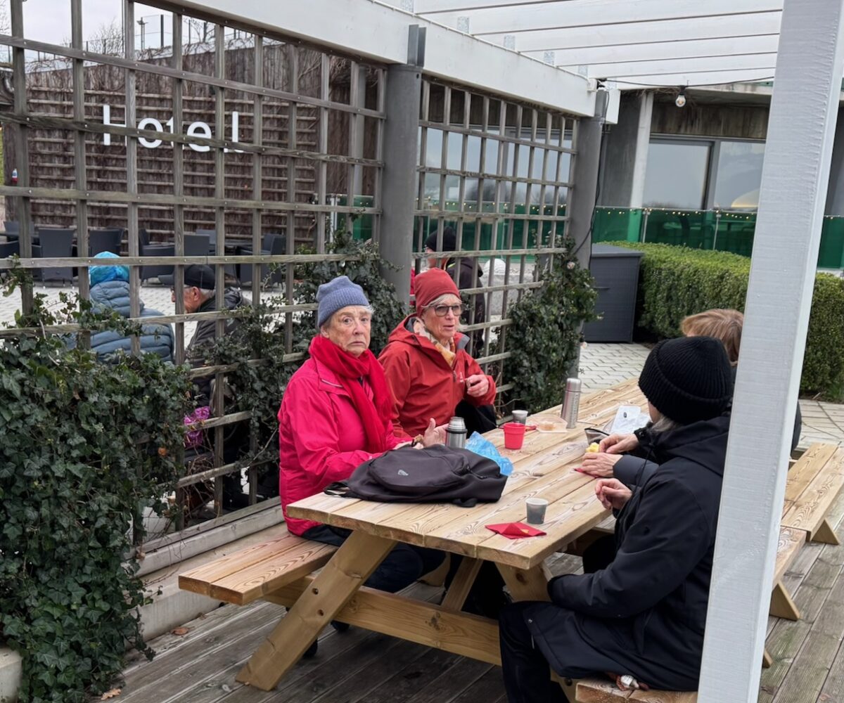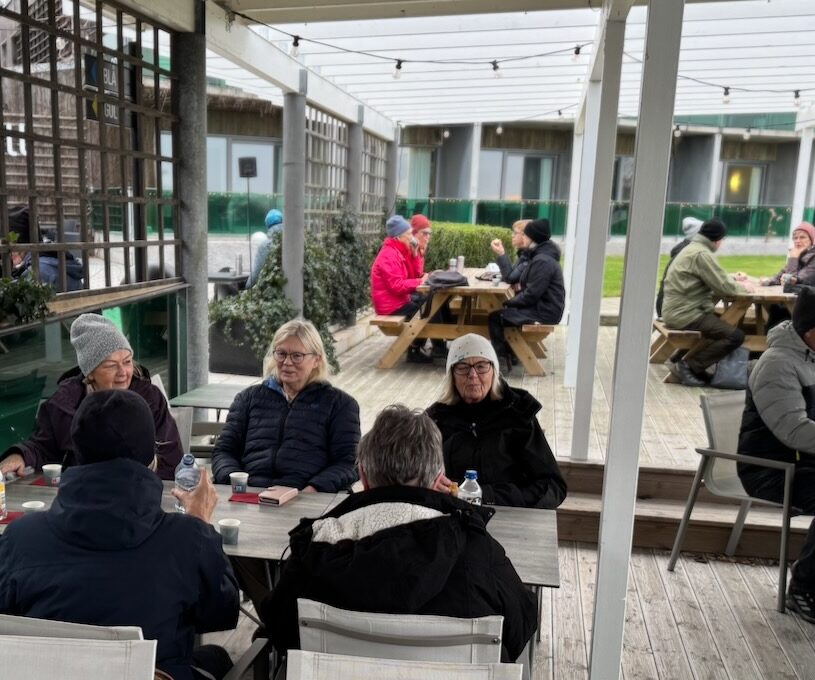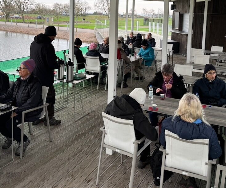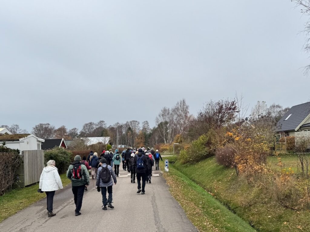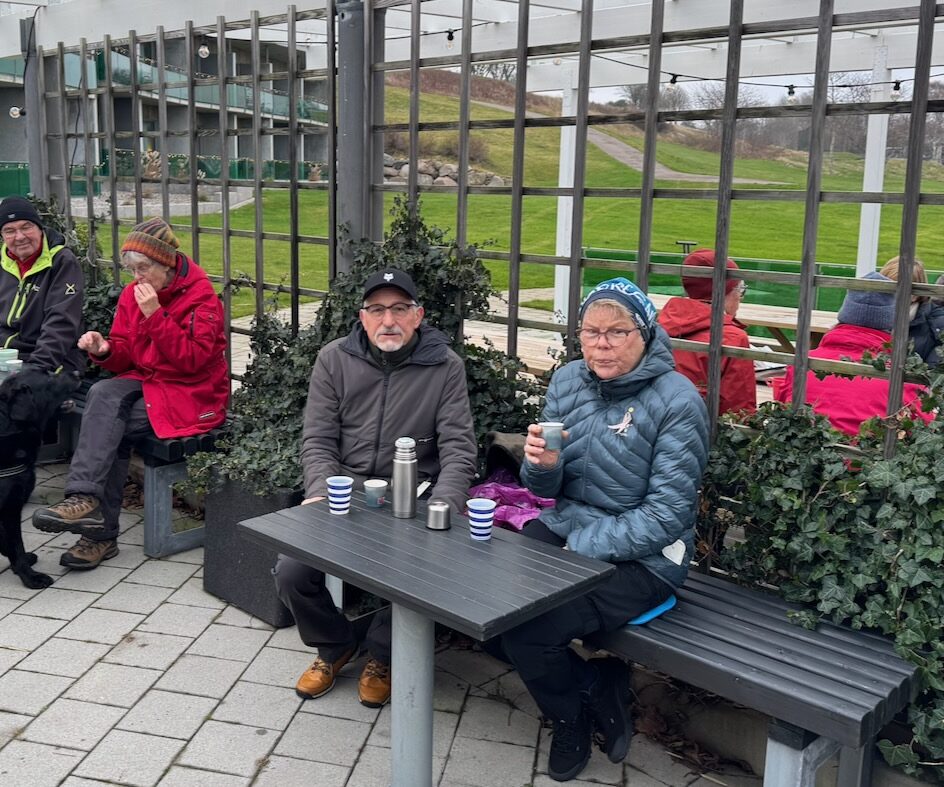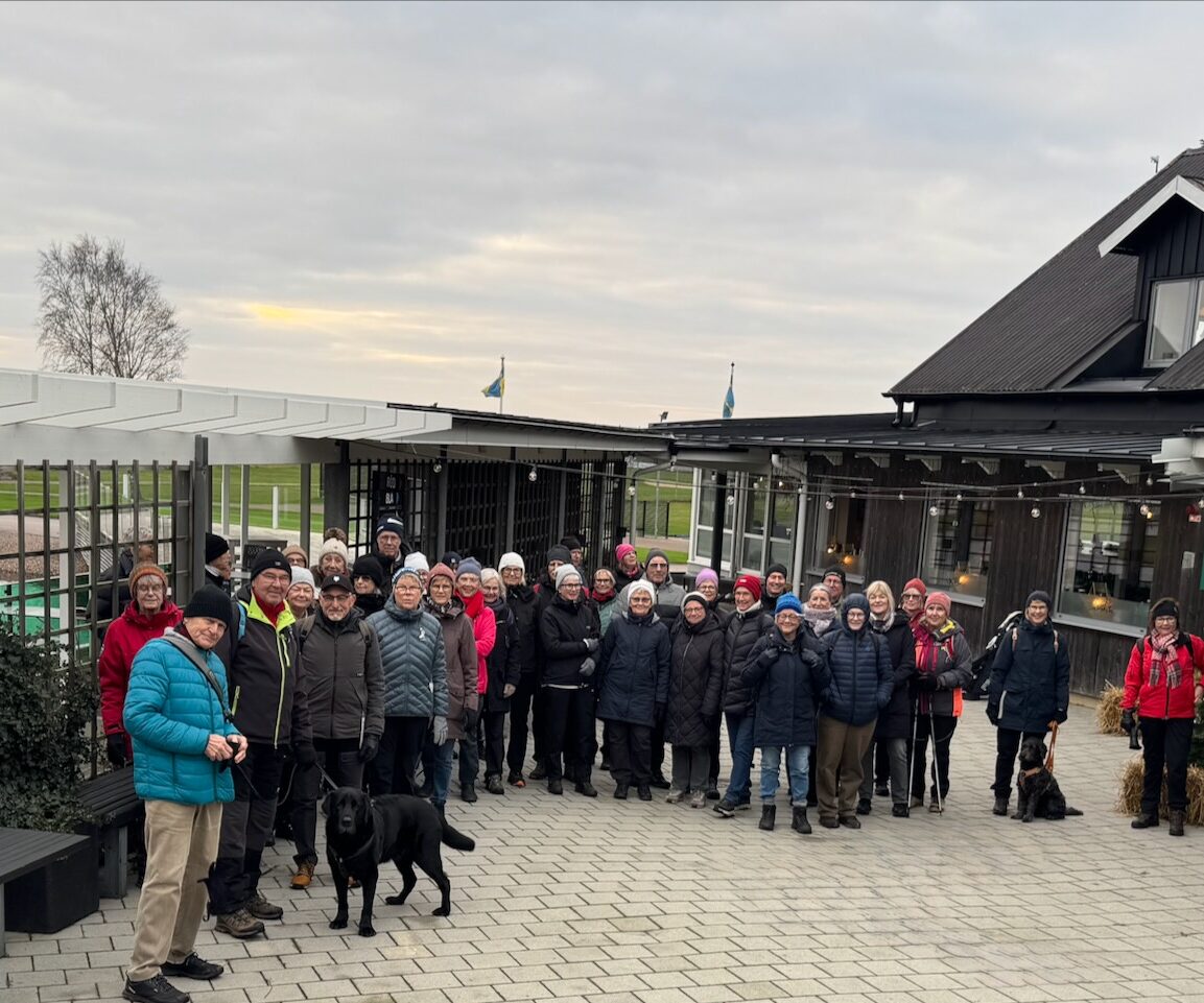 Fyrtioen måndagsvandrare samlades i Ringenäs för årets sista vandring. Vi gick via Kungsvägen, golfbanan och Rosendahl, där vi såg ett vildsvin och passerade nya golfhål. Efter vandringen samlades vi vid klubbhuset för glögg och pepparkaka på bryggan. Rita bjöd på sin traditionella tomtecharad, och Kjell tackades av gruppen för sina insatser.