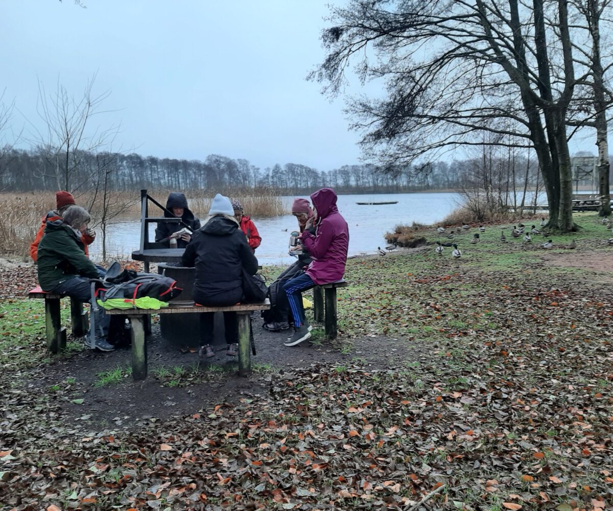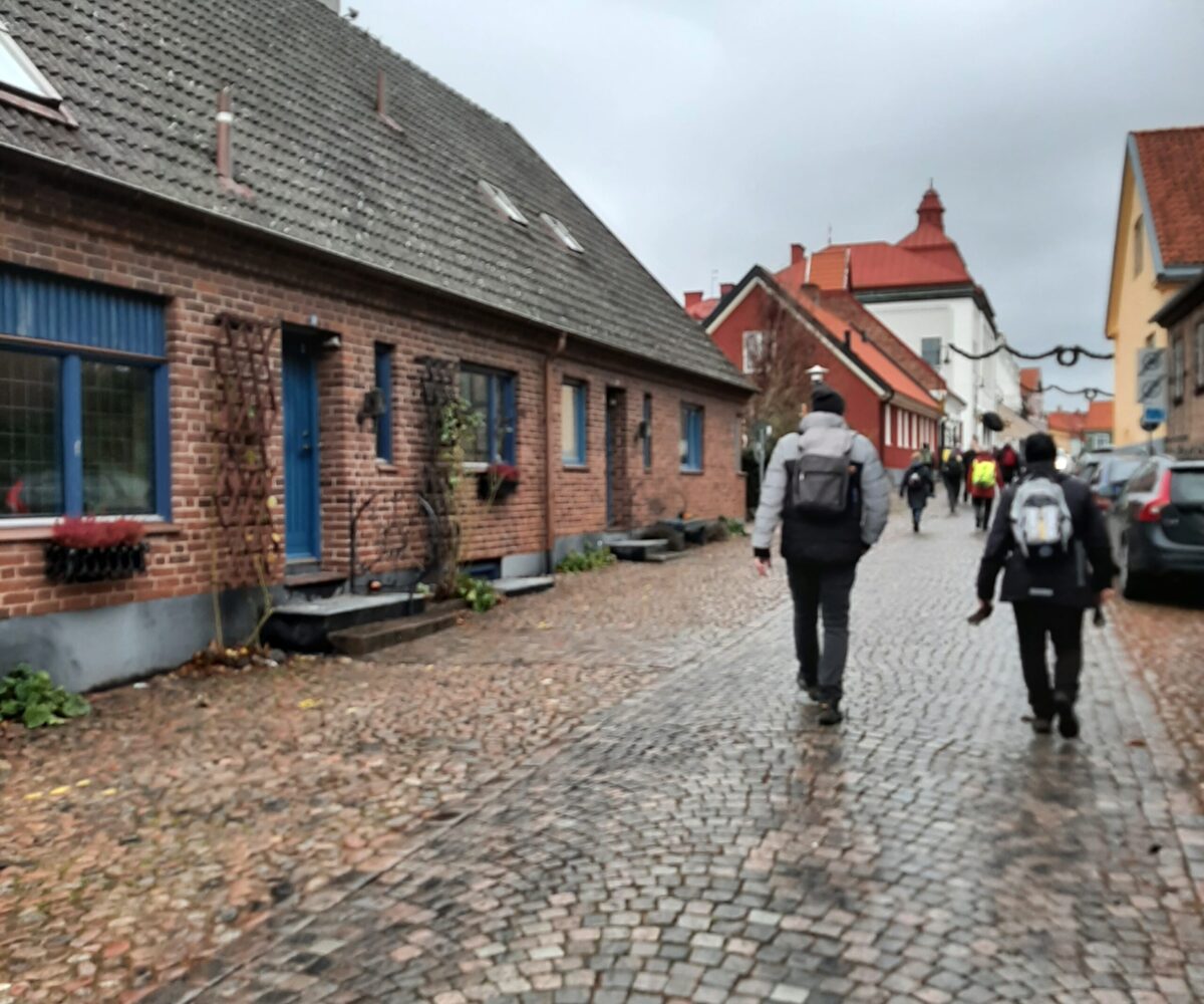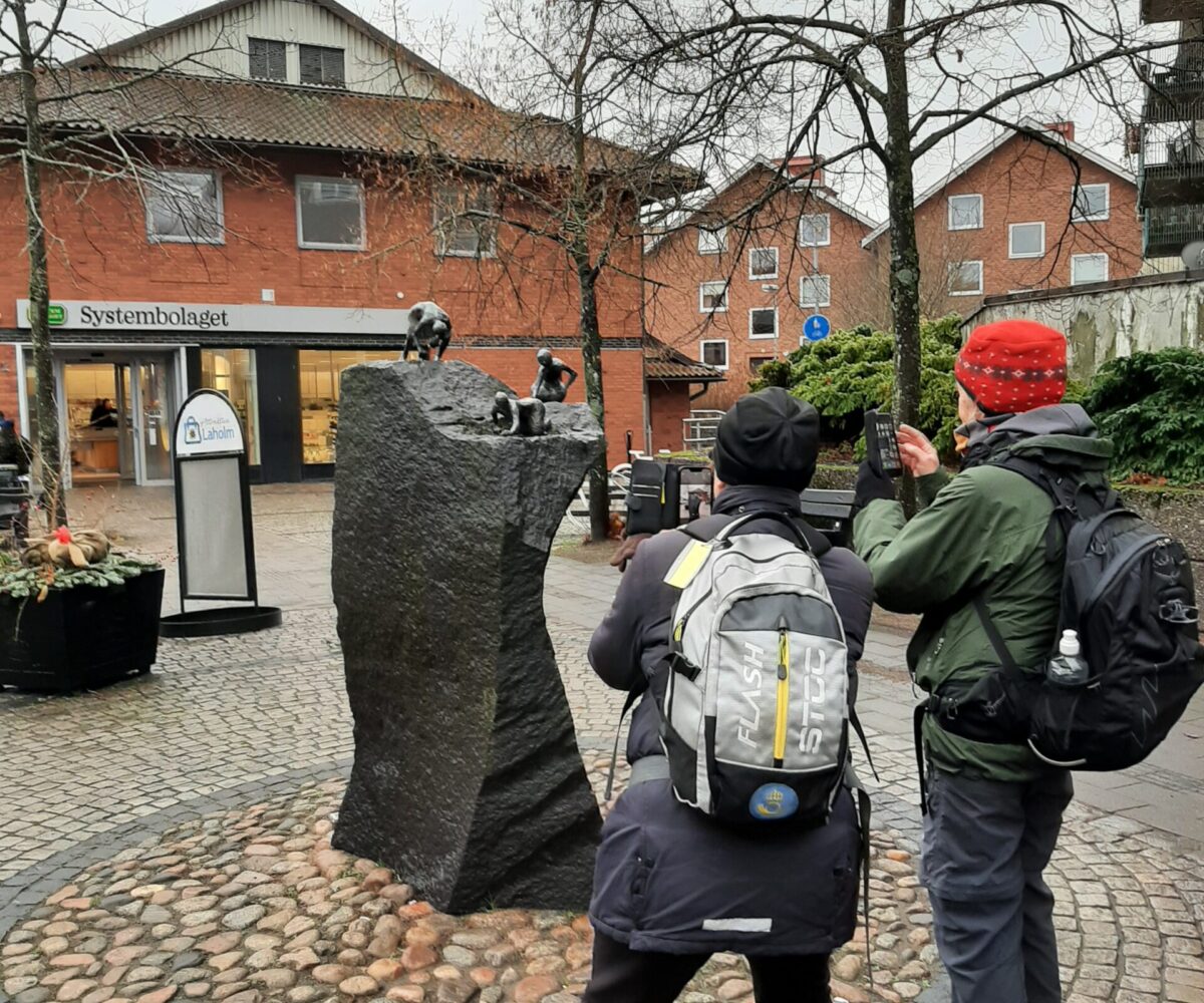 Långvandring 28 november 2025 Hälsans stig, Laholm. Lätt duggregn när vi startade från Gröningen. Vi följde Hälsans stig längs Lagan och genom stadsdelen Glänninge för att sedan komma till Glänninge sjö. Regnet upphörde och det smakade gott med 11-kaffe vid sjön. Vandringen fortsatte sedan genom Laholms stadspark, som blev Årets park 2013. I centrum tittade vi på några av konstverken i Laholm ”Den lilla staden med de stora konstverken”. Lunch intogs vid Lagan och därefter fortsatte vi följa ån ett stycke innan vi vände åter in mot centrum och avslutade med att gå på pittoreska gator genom den medeltida stadskärnan, Gamleby.